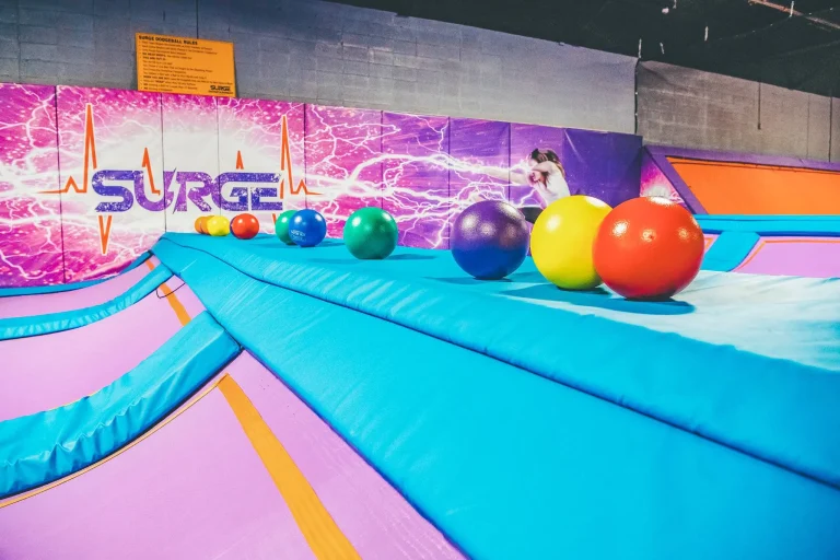 Play dodgeball with a twist: jump-and-dodge across trampoline surfaces, making for an energetic, fast-paced group activity.